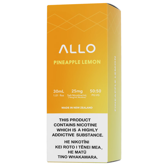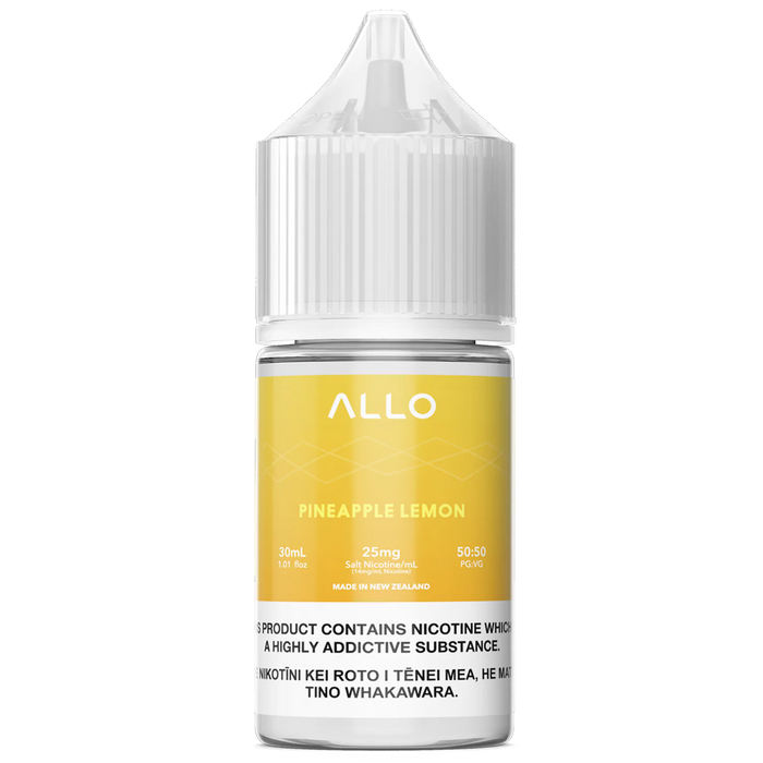 Introducing ALLO E-Liquid - Pineapple Lemon, a delightful nicotine salt e-liquid that combines the tangy zest of lemons with the tropical sweetness of pineapples.