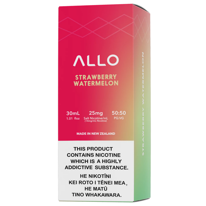 ALLO E-Liquid - Strawberry Watermelon is a nicotine salt e-liquid that combines the sweetness of ripe strawberries with the juiciness of fresh watermelon.